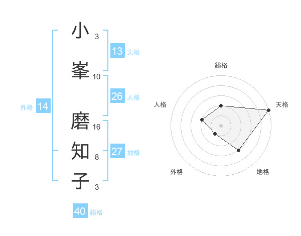 小峯 磨知子さんを姓名の画数から五運を鑑定