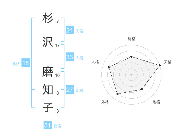 杉沢 磨知子さんを姓名の画数から五運を鑑定