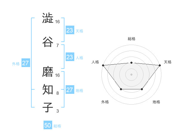 澁谷 磨知子さんを姓名の画数から五運を鑑定