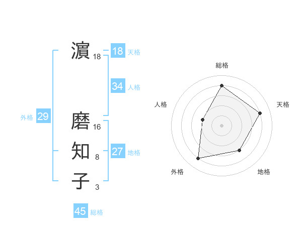 濵 磨知子さんの天格は18画の4点!