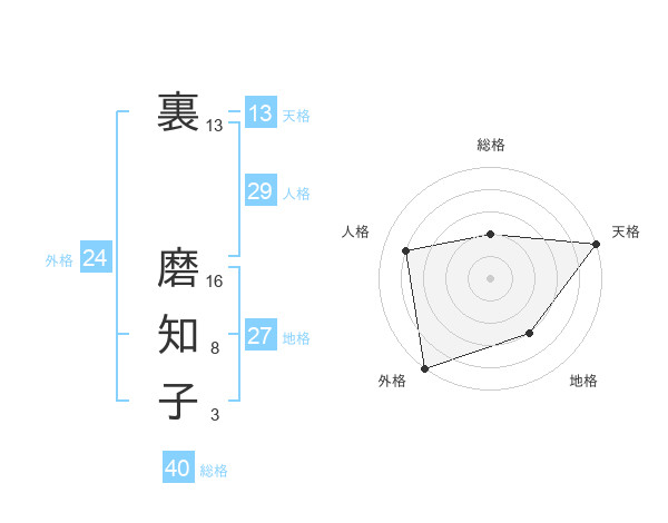 裏 磨知子さんを姓名の画数から五運を鑑定