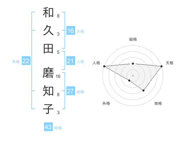 和久田 磨知子さんの天格は16画の5点!