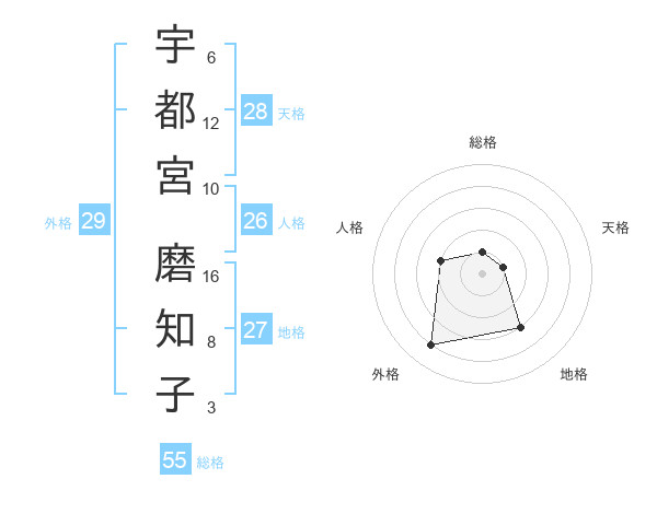 宇都宮 磨知子さんの外格は29画の4点!