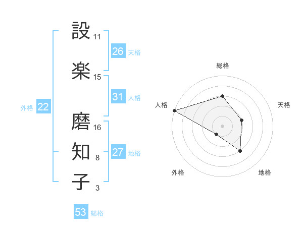 設楽 磨知子さんを姓名の画数から五運を鑑定