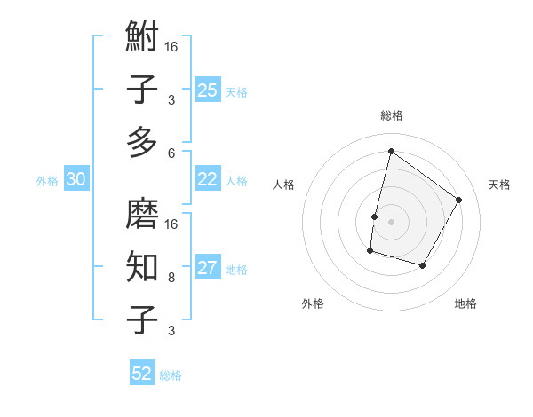 鮒子多 磨知子さんを姓名の画数から五運を鑑定