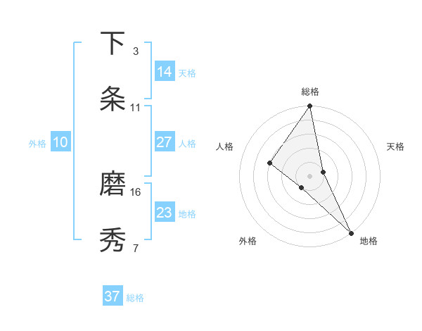 下条 磨秀さんの総格は37画の5点!