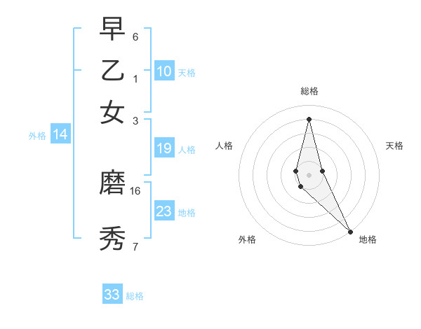 早乙女 磨秀さんを姓名の画数から五運を鑑定