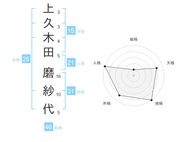 上久木田 磨紗代さんを姓名の画数から五運を鑑定