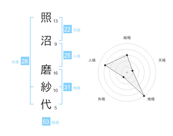 照沼 磨紗代さんの総格は53画の3点!