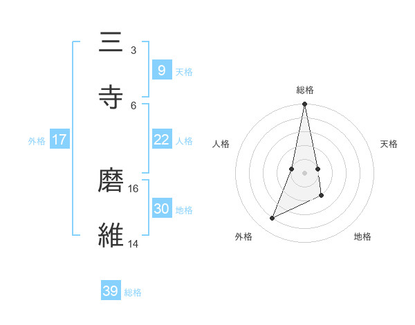 三寺 磨維さんの総格は39画の5点!