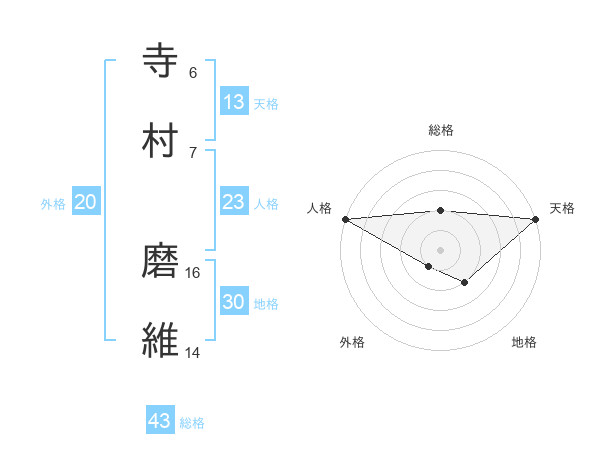 寺村 磨維さんを姓名の画数から五運を鑑定