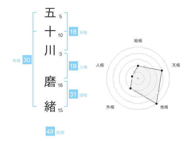 五十川 磨緒さんを姓名の画数から五運を鑑定