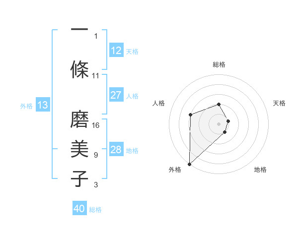 一條 磨美子さんを姓名の画数から五運を鑑定
