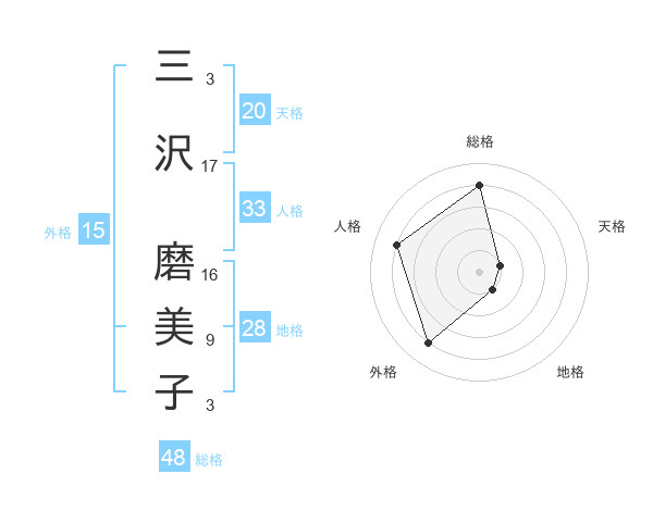 三沢 磨美子さんを姓名の画数から五運を鑑定