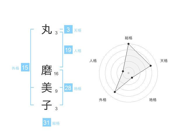 丸 磨美子さんを姓名の画数から五運を鑑定