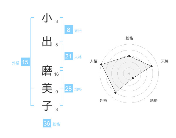 小出 磨美子さんを姓名の画数から五運を鑑定