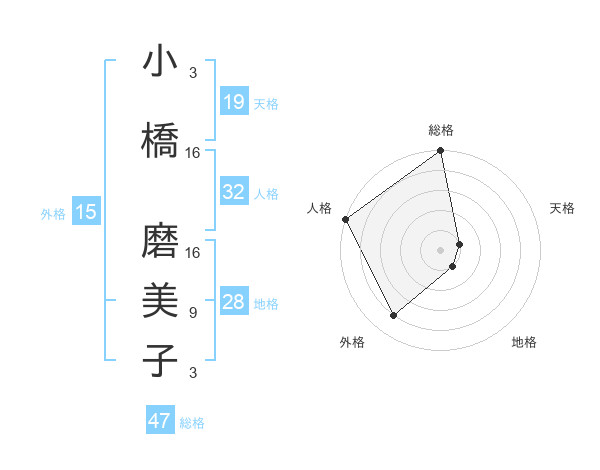 小橋 磨美子さんを姓名の画数から五運を鑑定