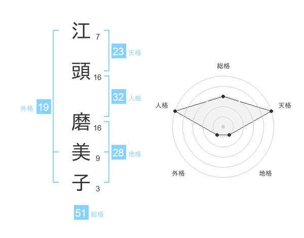江頭 磨美子さんを姓名の画数から五運を鑑定