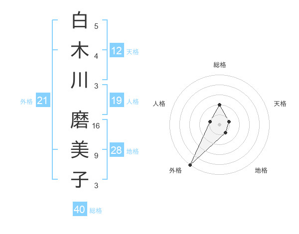 白木川 磨美子さんを姓名の画数から五運を鑑定