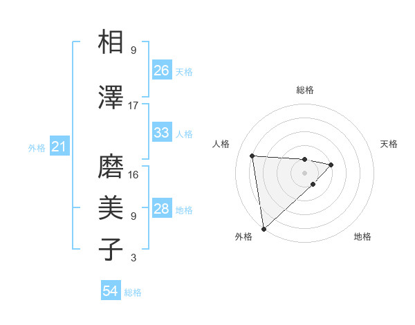 相澤 磨美子さんを姓名の画数から五運を鑑定