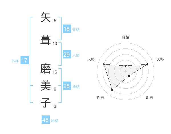 矢葺 磨美子さんを姓名の画数から五運を鑑定