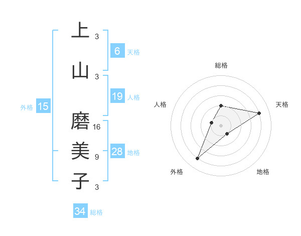 上山 磨美子さんを姓名の画数から五運を鑑定