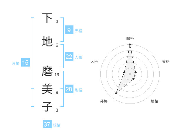 下地 磨美子さんを姓名の画数から五運を鑑定