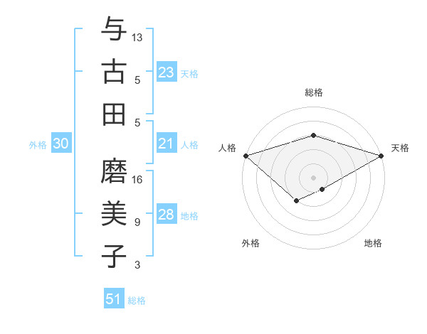 与古田 磨美子さんの総格は51画の3点!