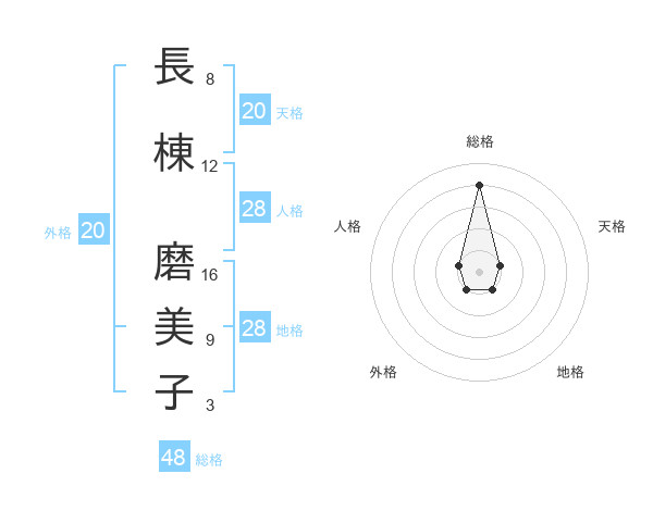 長棟 磨美子さんを姓名の画数から五運を鑑定