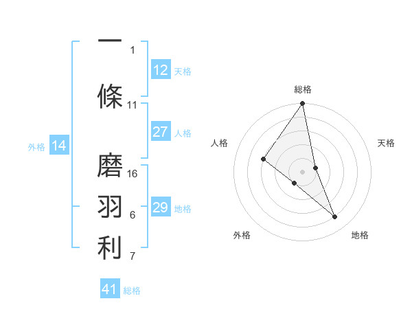 一條 磨羽利さんの外格は14画の1点!