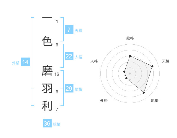一色 磨羽利さんを姓名の画数から五運を鑑定