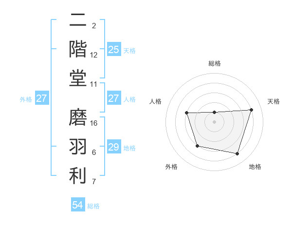 二階堂 磨羽利さんを姓名の画数から五運を鑑定