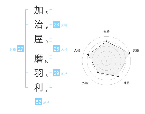 加治屋 磨羽利さんの総格は52画の4点!
