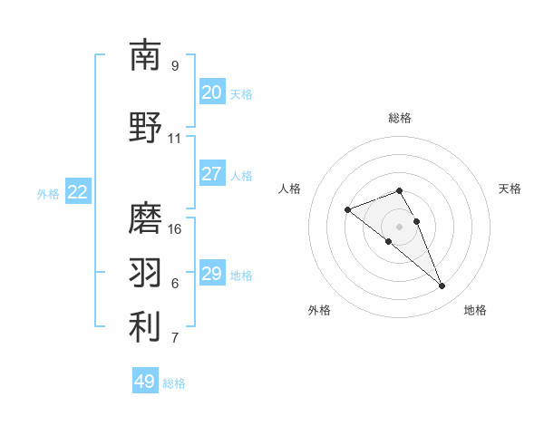 南野 磨羽利さんを姓名の画数から五運を鑑定