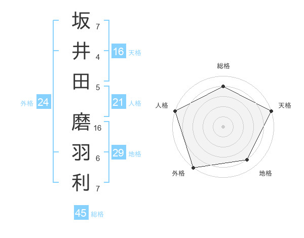 坂井田 磨羽利さんを姓名の画数から五運を鑑定