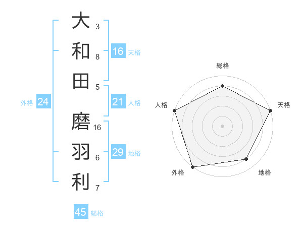 大和田 磨羽利さんの外格は24画の5点!