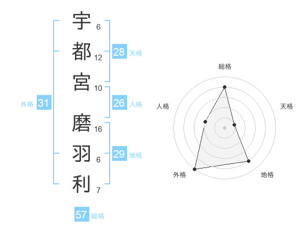 宇都宮 磨羽利さんを姓名の画数から五運を鑑定