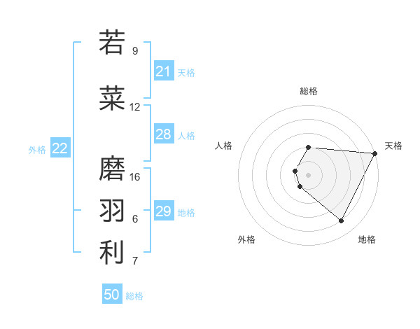 若菜 磨羽利さんを姓名の画数から五運を鑑定
