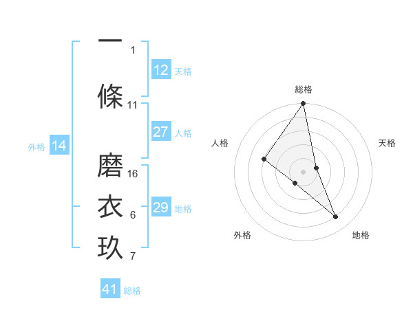 一條 磨衣玖さんを姓名の画数から五運を鑑定