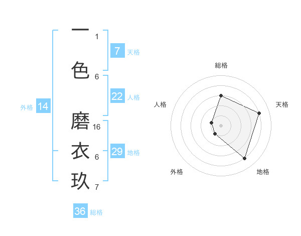 一色 磨衣玖さんの地格は29画の4点