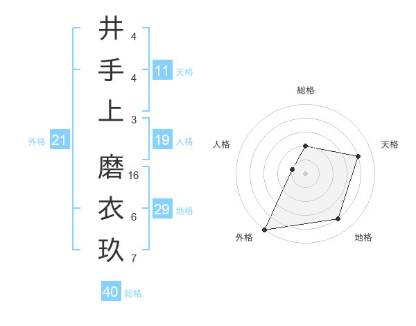 井手上 磨衣玖さんを姓名の画数から五運を鑑定