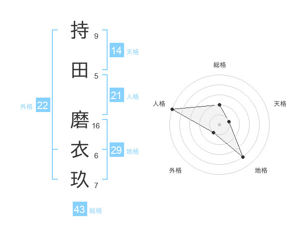 持田 磨衣玖さんを姓名の画数から五運を鑑定