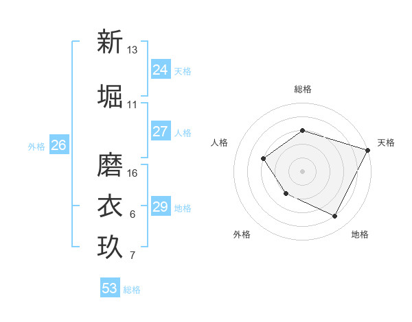 新堀 磨衣玖さんを姓名の画数から五運を鑑定
