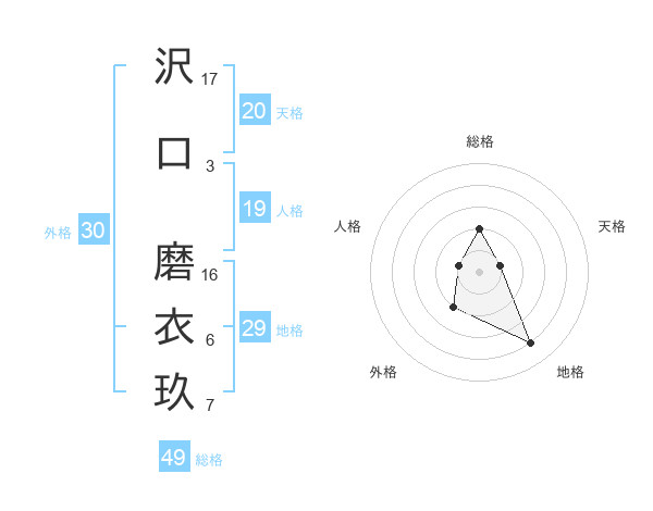沢口 磨衣玖さんの総格は49画の2点!
