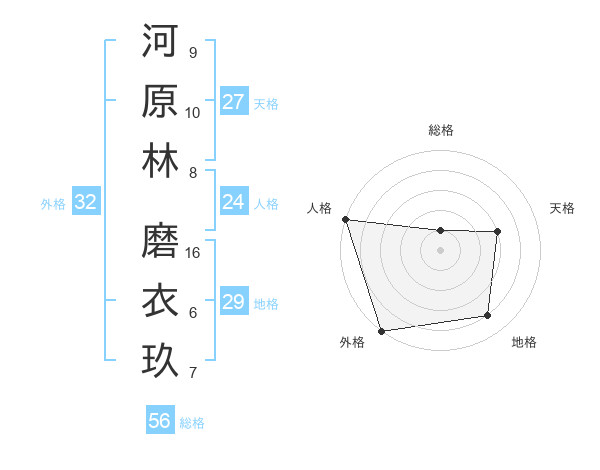 河原林 磨衣玖さんを姓名の画数から五運を鑑定