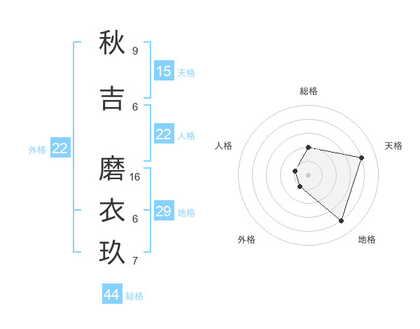 秋吉 磨衣玖さんを姓名の画数から五運を鑑定