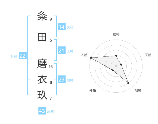 粂田 磨衣玖さんの天格は14画の1点!