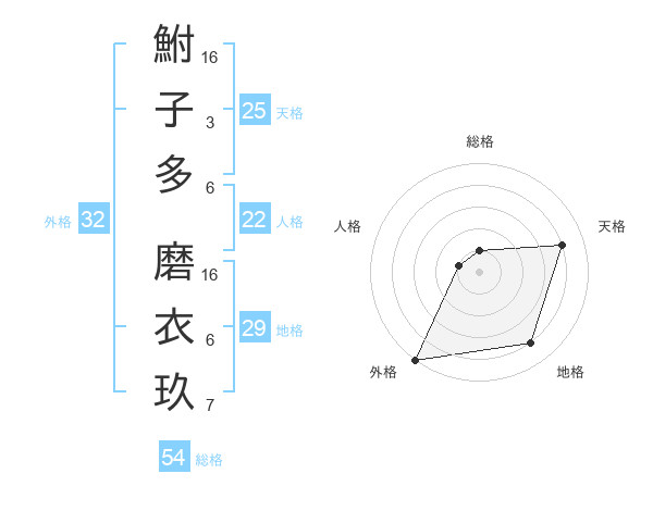鮒子多 磨衣玖さんの外格は32画の5点!
