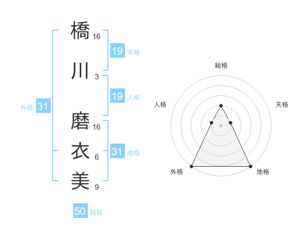 橋川 磨衣美さんを姓名の画数から五運を鑑定