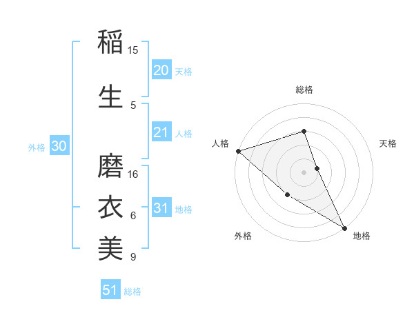 稲生 磨衣美さんを姓名の画数から五運を鑑定